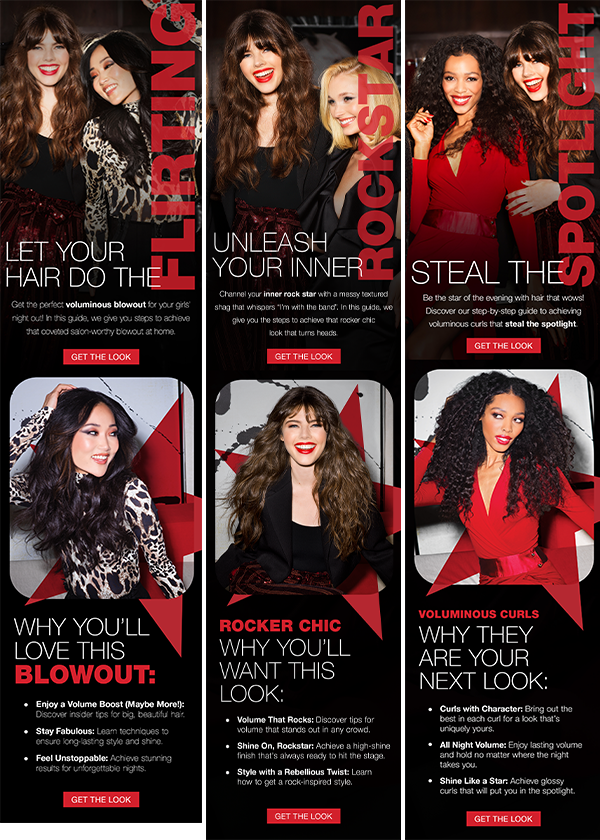 Designed to bring SexyHair’s iconic Big Red Can to life in a modern, social-first way, the Paint the Town Red campaign celebrated the energy, color, and camaraderie of getting ready with your girls. I collaborated cross-functionally with marketing and e-commerce teams to create a cohesive visual story across social, email, and paid channels.